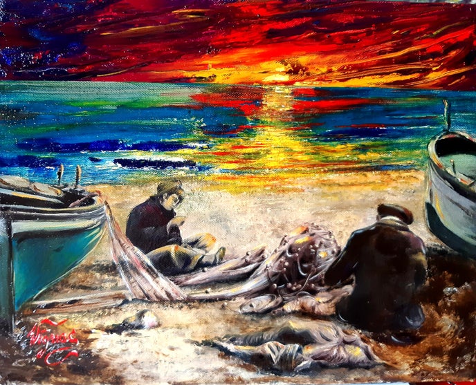 " pescatori " olio su tela cm. 40x30